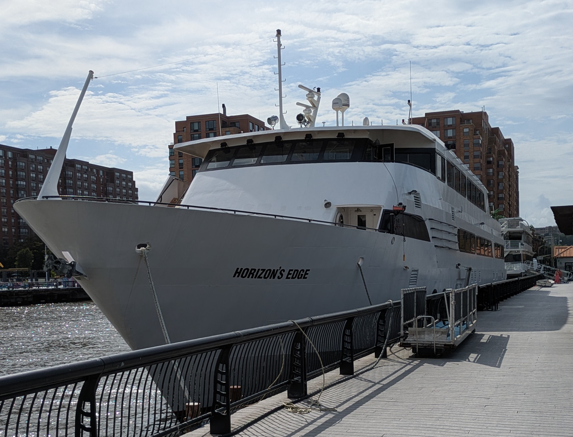 The Sangeet will take place on a yacht departing from Pier 14 in Hoboken, NJ (maps link) at 6pm sharp. Important: Arriving late may mean missing the boat sailing off and being unable to attend the Sangeet. Below is entrance to the pier as well as the boat